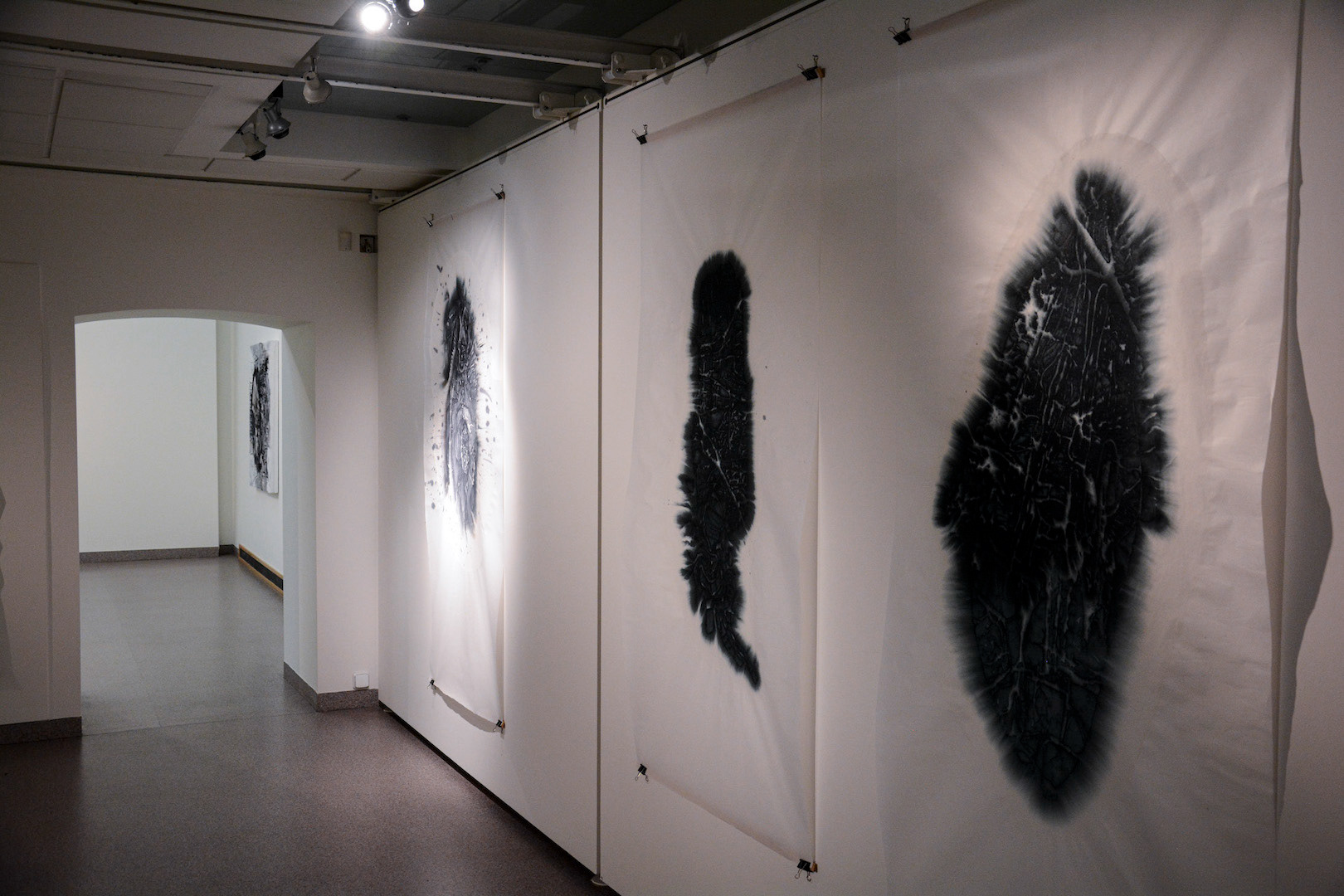 Výstava Miloslava Polcara s názvem Absorpce navazuje na autorovy dlouhodobější tvůrčí koncepty pojmenované: Jedna z druhé, Vedle přes a skrz, Transfer, Prostor grafiky, Prostupování světla a tvarů, Intermundia, Otisk, Otevřené médium, Transpozice anebo poslední samostatnou výstavu uskutečněnou v Andělské hoře pod názvem Ex Matre. Tradičně jsou ve výstavním prostoru prezentované velkoformátové práce v kombinovaných technikách od grafického postupu k malbě s autorskými specifickými výtvarnými postupy, které přesahují do intermediální tvorby. Hlavním nositelem tvorby je papír, jako hlavní výtvarné médium se svými specifickými možnostmi, které je nutno ale dobře znát, zvláště pokud se jedná o rýžový papír.