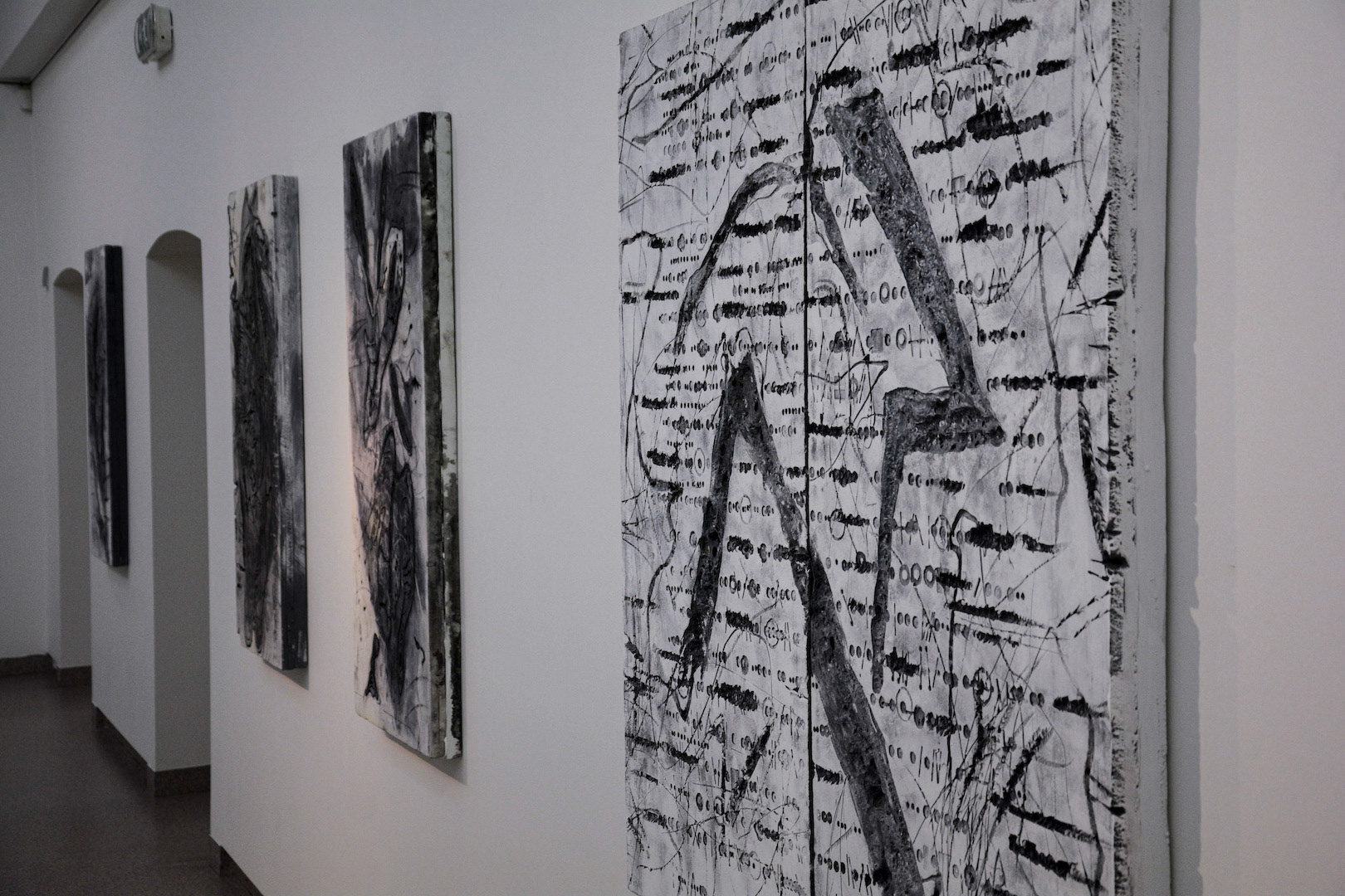 Miloslav Polcar představuje svá velkoformátová plošná a trojrozměrná díla, která pozbývají charakter polopatistických obrazů se symbolickými vzkazy. Celý výstavní projekt pod názvem Absorpce svým významem plně vystihuje autorovu shrnující myšlenku vycházející z předcházejících cyklů a konceptů, které v minulých letech na veřejnosti prezentoval. Absorpce je do určité míry velmi abstraktním pojmem, který v sobě skrývá mnohé konkrétnosti; pohlcování, vstřebávání, sílení či zeslabování, v elektromagnetickém záření jde o průchod částic. Tvary a barvy jsou v neustálém pohybu, v dynamické křivce kulminující do exploze barev a tvarů, poutají divákovo oko a vedou ho z jedné bouře do druhé. Pohyb je zachycen v malbě, za přítomnosti matric. Matrice stojí v samé opozici, je soběstačným výrazovým prostorovým dílem, avšak v případě grafického principu je pouhým nástrojem. Lze tak hovořit o dvojí autonomii – neopakujícího se autorského tisku a prostorově hluboce řešené matrice, tedy reliéfu.