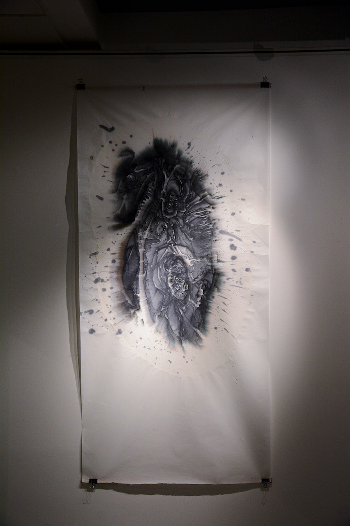 Matrice proto má svoji trvalou paměť, je definována vztahem a obsahovou souvislostí. Má povahu paradoxu implikace, definované vztahem. Matrice má povahu paradoxu. Jsou zde dva výroky. Výrok matrice. Výrok nového a dalšího tisku. Každý nový tisk má svoji novou povahu. Leč mají všechny společnou, zrcadlově obrácenou, podobu – otisk. V případě MP je situace zcela odlišná, matrice jsou tvořeny z tradičních nebo novodobých materiálů, za účasti experimentů, vlastních vyzkoušených postupů, které přinášejí nové pohledy na celou grafickou problematiku. Znalost grafického řemesla se zkušenostmi s východní tradicí tisku a tiskařských postupů, v kontextu s ručním papírem umožňuje autorovi dosáhnout účinků, kdy se stírá hranice mezi grafikou a malbou. Stejný technologický autorský postup nacházíme i v autorských knihách. Barevnost se neomezuje pouze na kontrast černé a bílé, přesto hluboká znalost východního tisku umožňuje MP využít bohatou tonální škálu v jemném rozlívání se barvy v ploše papíru. Barva se tak rozlévá do všech koutů obrazu po celé ploše, žene se jako láva a matrice uchovává pouze kompoziční rámec díla. Chromatické tisky na bílé prázdné ploše znesnadňují dešifrovat divákovi poznání o jakou výtvarnou oblast jde. Barevně plné neohraničené plochy ve vzájemném kontrastu jsou přitom řízeny hluboce řezanými, propalovanými, leptanými liniemi matrice. Barva, barevná plocha je zde výrazovým a nejdůležitějším komunikativním prostředkem odkazuje k názvu výstavy k přelévání, pohlcování, ztrácení se, kmitání k věčnému pohybu.